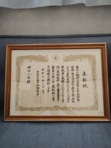 代表者名での表彰ではあるが、当然氏子会の名誉ある受賞である。